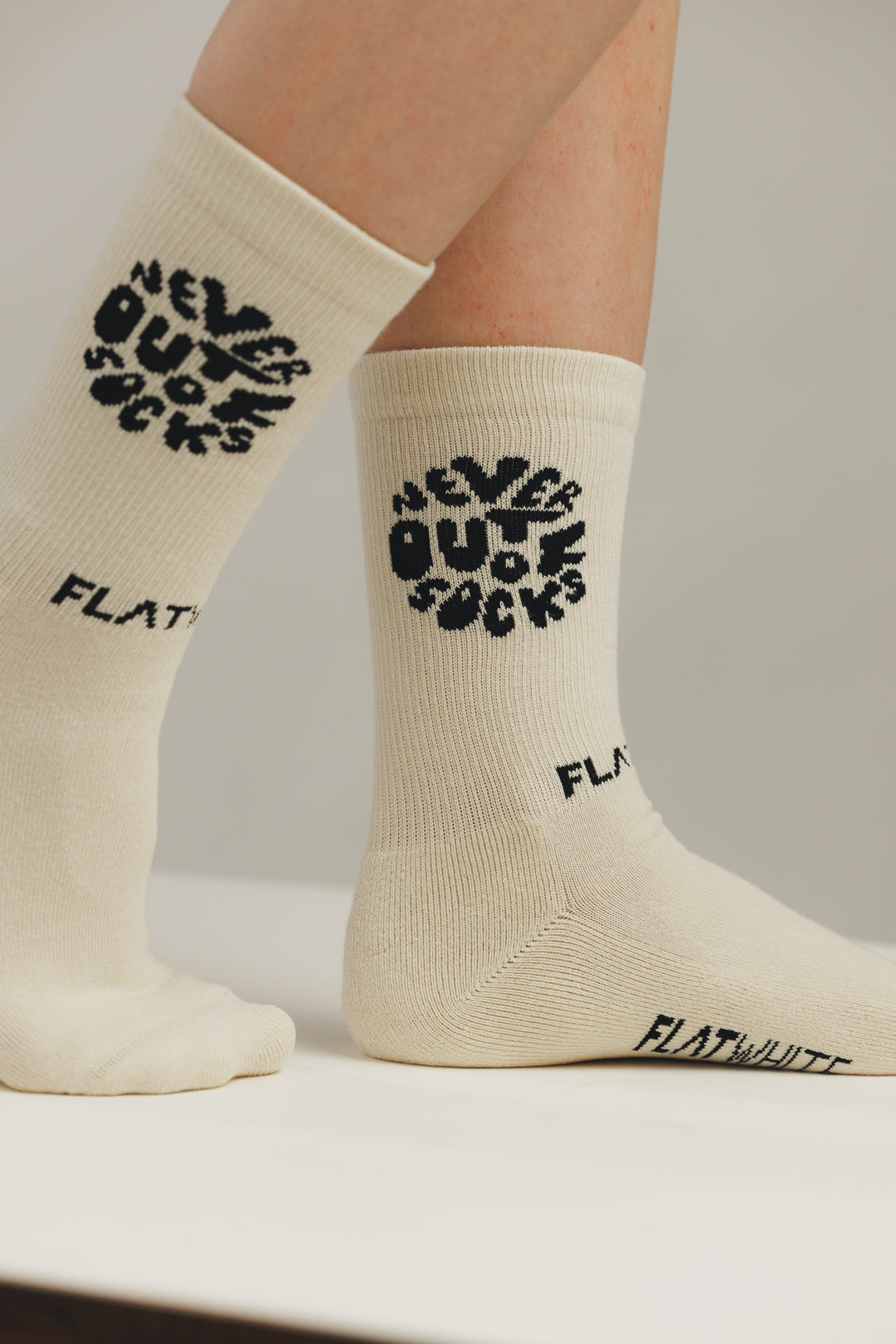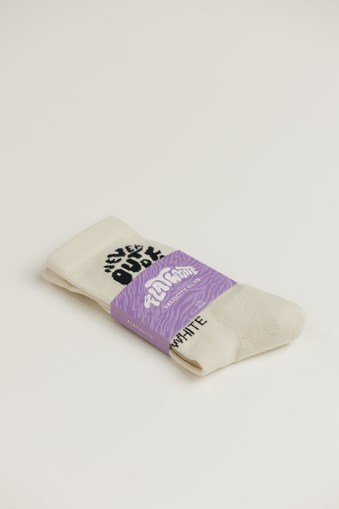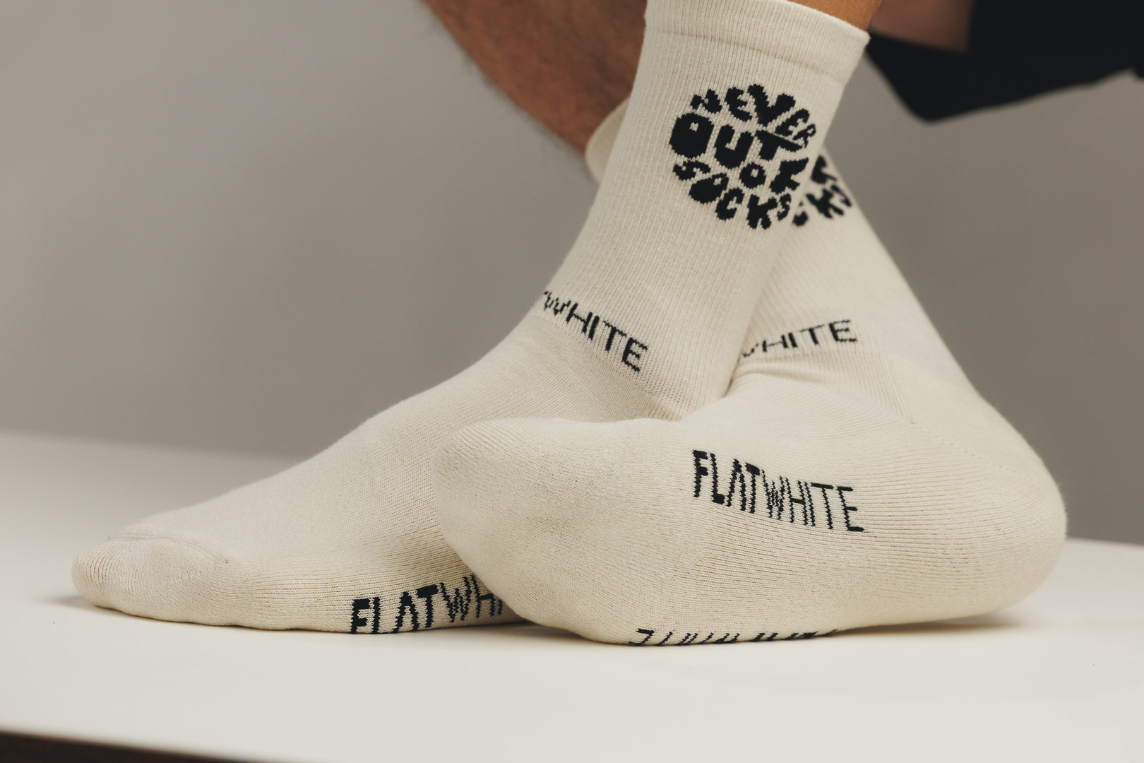 Feine Rippstrukturen am Schaft sorgen für sicheren Halt ohne Einschneiden und verleihen der Socke einen modernen, cleanen Look. Der dezente FLATWHITE Schriftzug setzt einen stylischen Akzent und macht die NOOS Socke zum perfekten Daily Essential.