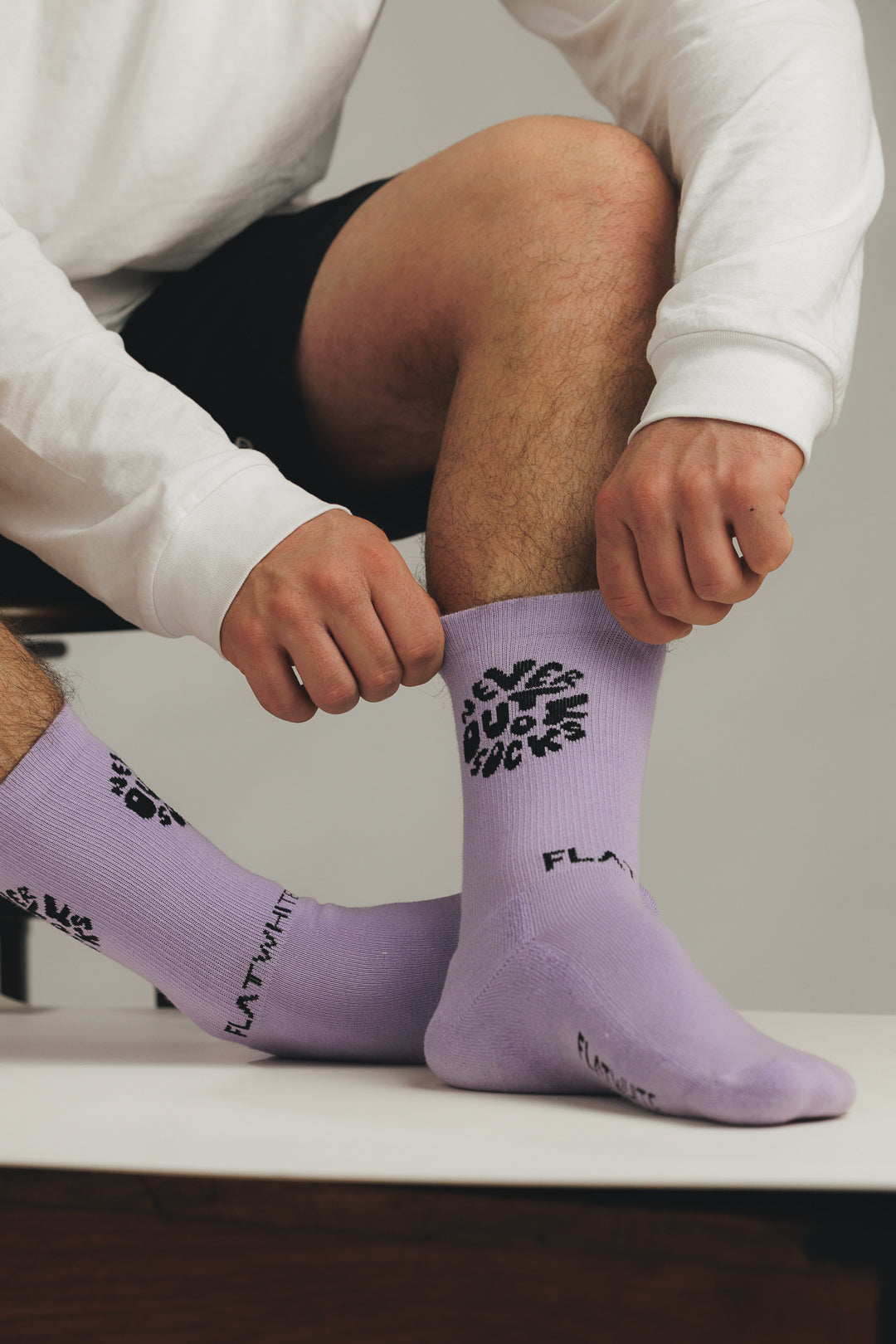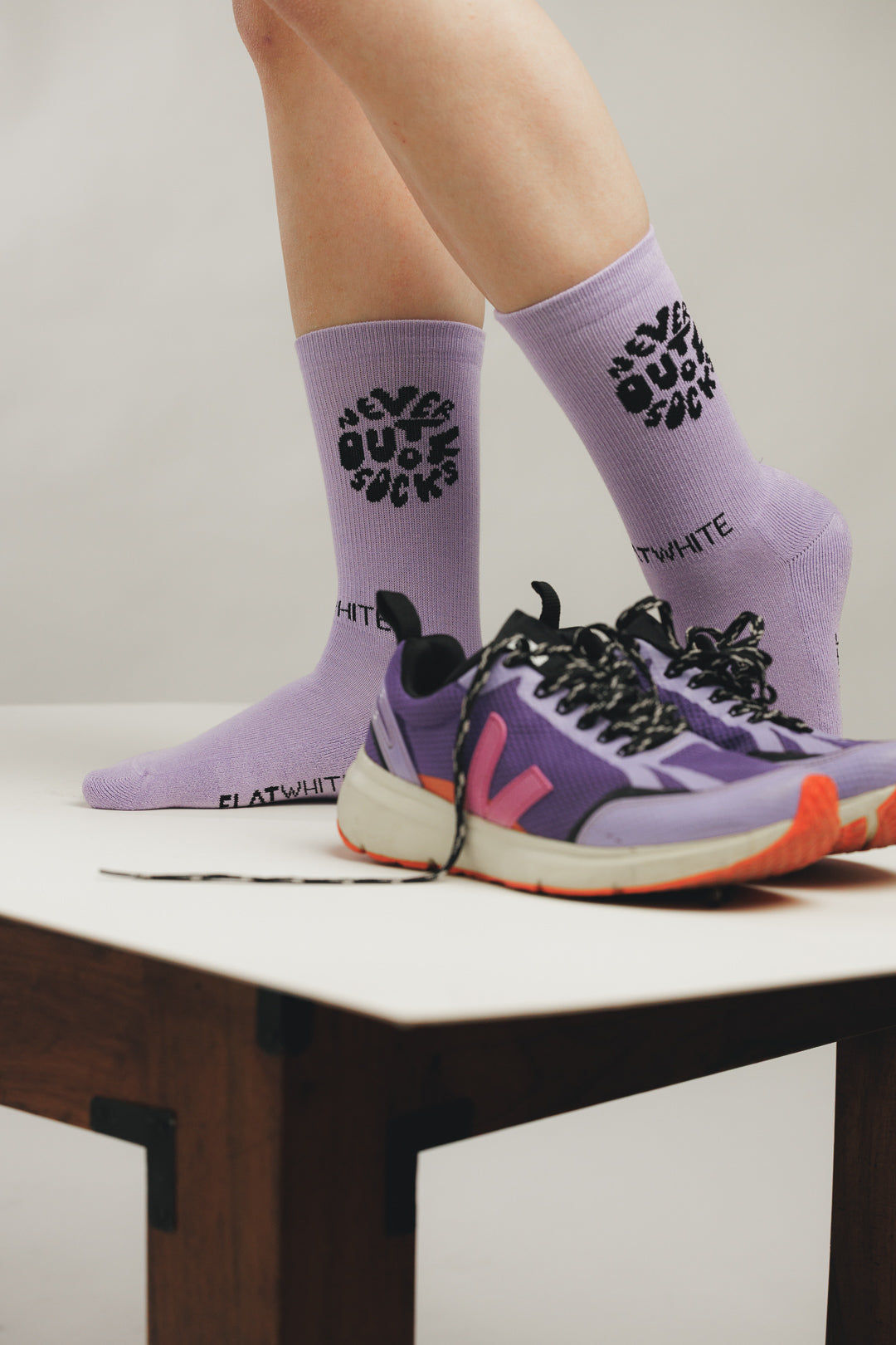 Erhältlich in zwei zeitlosen Farben – Flieder/Lila und Sand – ist die NOOS die Socke, die du immer wieder tragen wirst. Einfach, stylisch, zuverlässig – Never Out Of Socks.